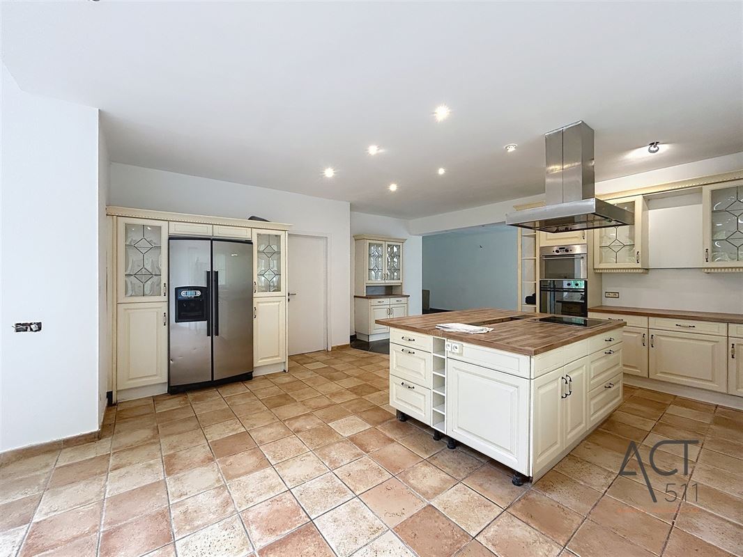 meubles de rangement, évier double bac + égouttoir, hotte, taques de cuisson, four, emplacement frigo
